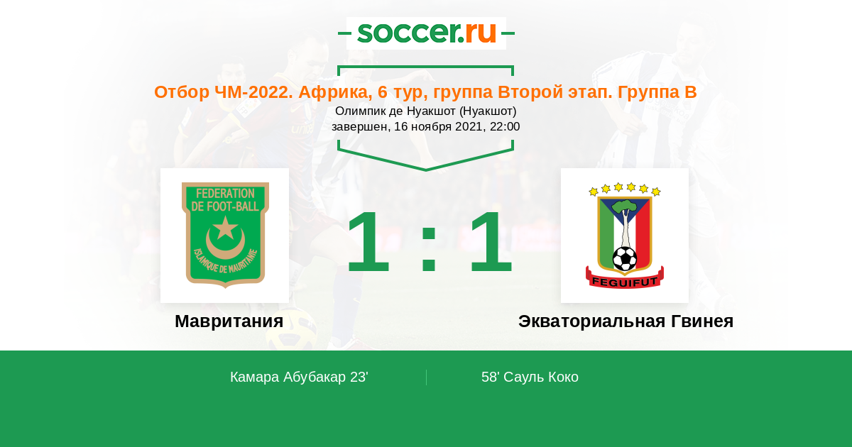 В случае победы сборная Экваториальной Гвинеи имеет шансы на выход в следующую стадию отбора на чемпионат мира среди африканских стран, в то время, как сборной Мавритании уже ничего не светит.