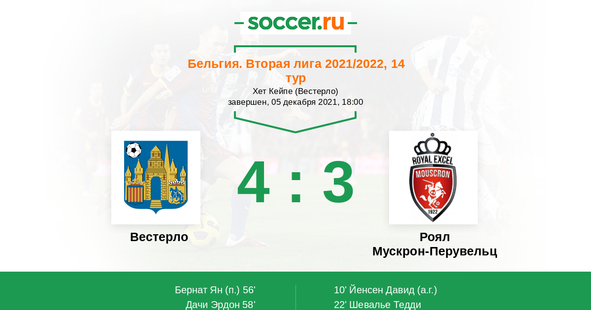 Протокол матча Вестерло против Роял Мускрон-Перувельц