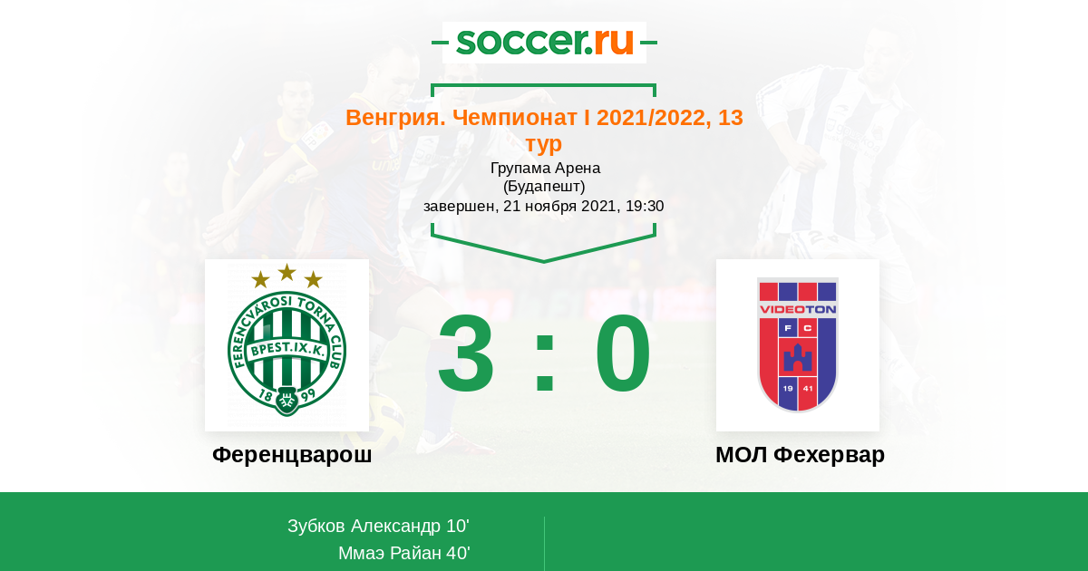 Протокол матча Ференцварош против МОЛ Фехервар