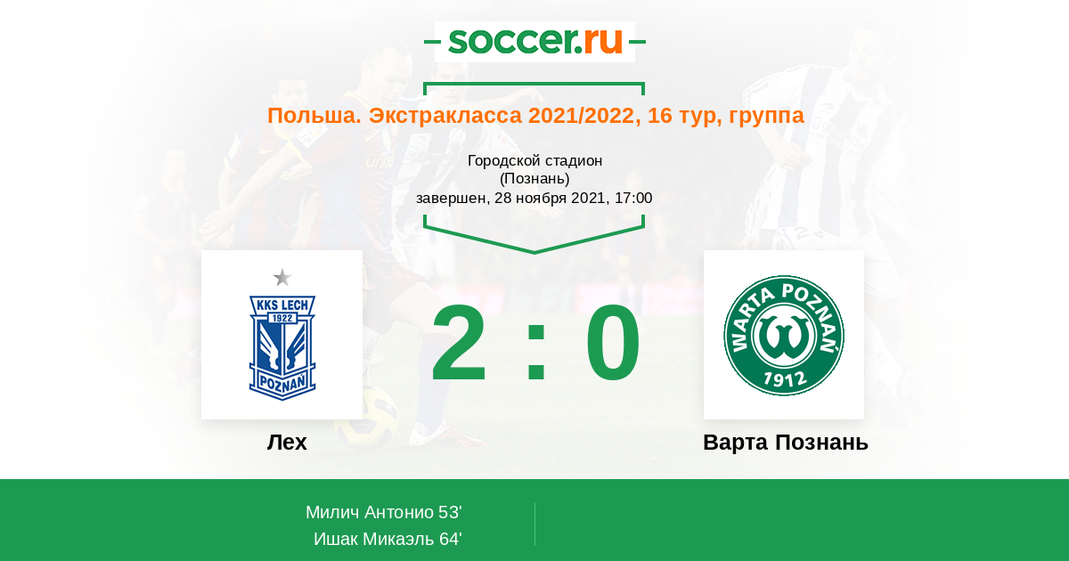Протокол матча Лех против Варта Познань