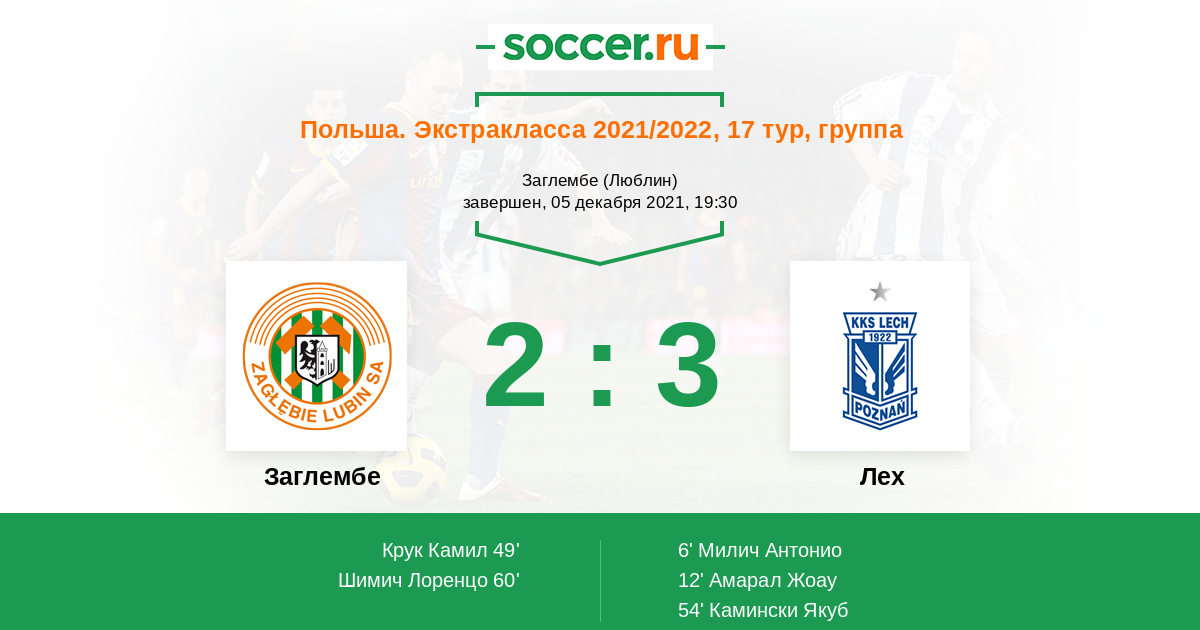 Протокол матча Заглембе против Лех