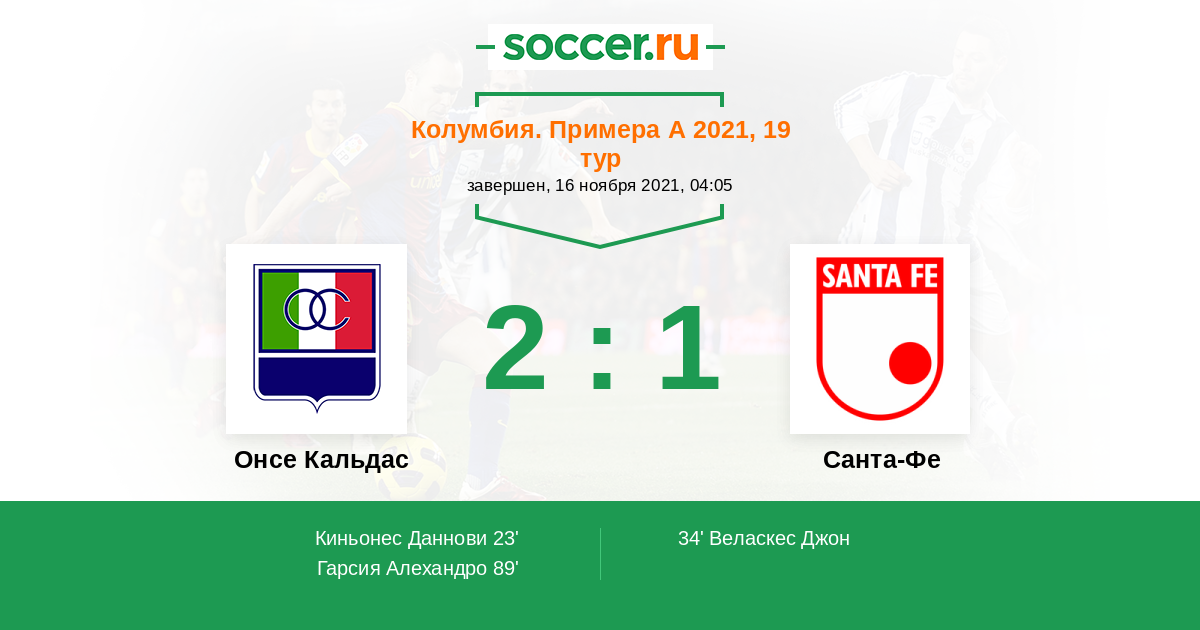 Протокол матча Онсе Кальдас против Санта-Фе