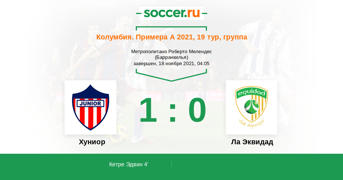 Протокол матча Хуниор против Ла Эквидад