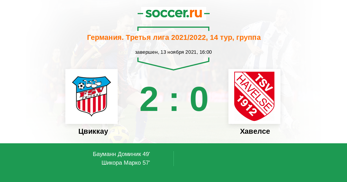 Протокол матча Цвиккау против Хавелсе