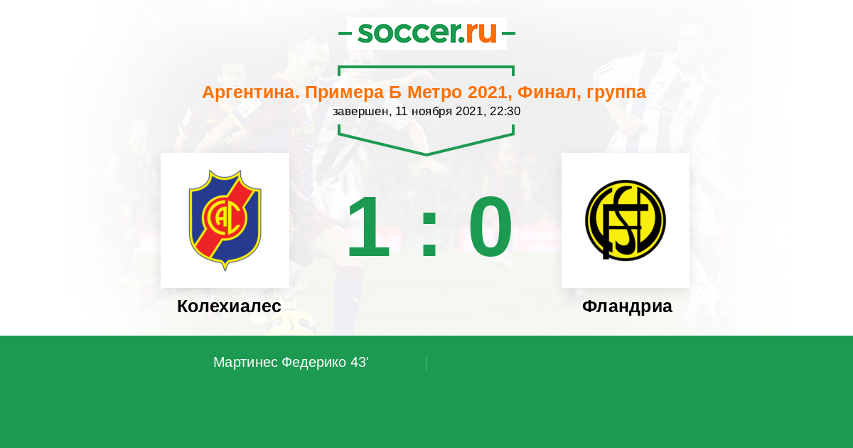 Протокол матча Колехиалес против Фландриа