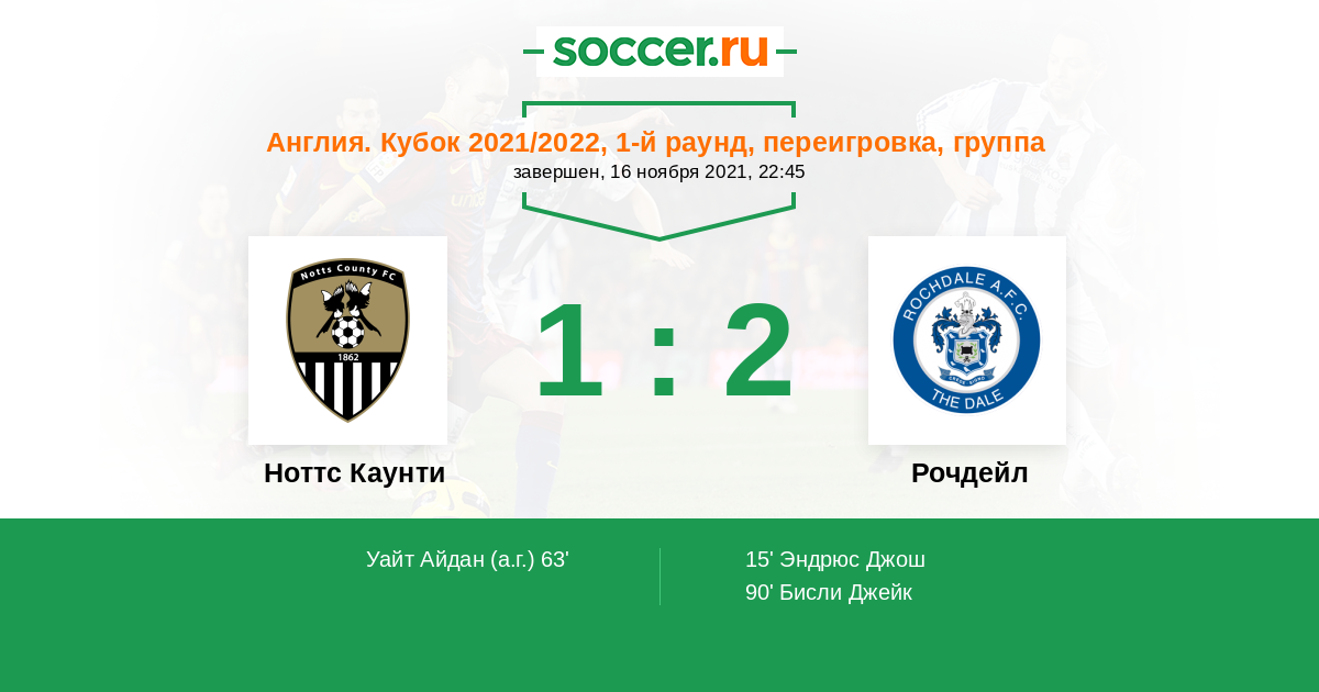 Протокол матча Ноттс Каунти против Рочдейл