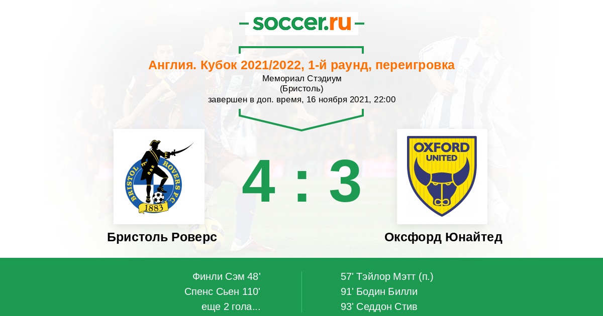 Протокол матча Бристоль Роверс против Оксфорд Юнайтед