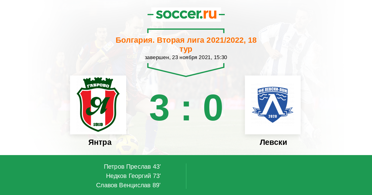 Протокол матча Янтра против Левски