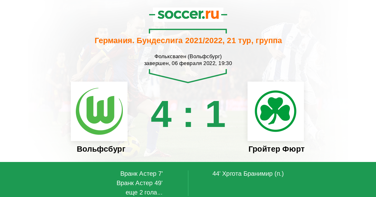 И если Вольфсбург на своём поле ещё добывает очки, то Гройтер в гостях выцепил лишь одну ничью. Рискну поставить на минимальную победу...