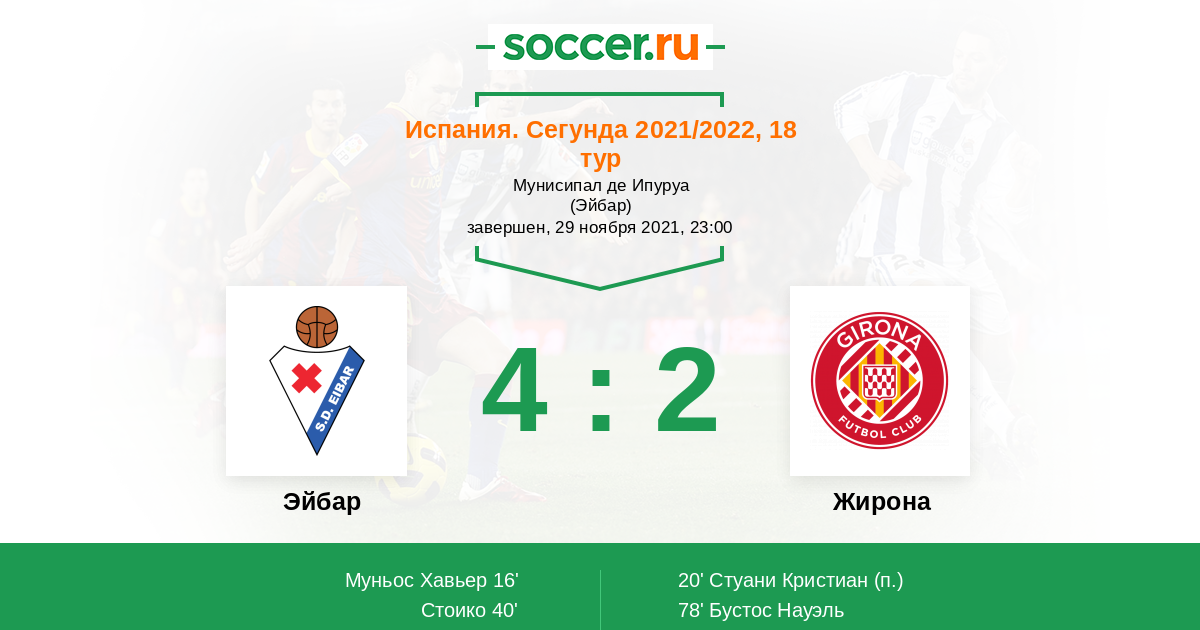 Эйбар и Жирона забивают прилично по меркам Сегунды. У команд есть хорошие исполнители в атаке. У Эйбара Стоичков, а у Жироны Стуани. Оба забили уже по 8 голов. Думаю в этом матче им тоже удастся отличиться.