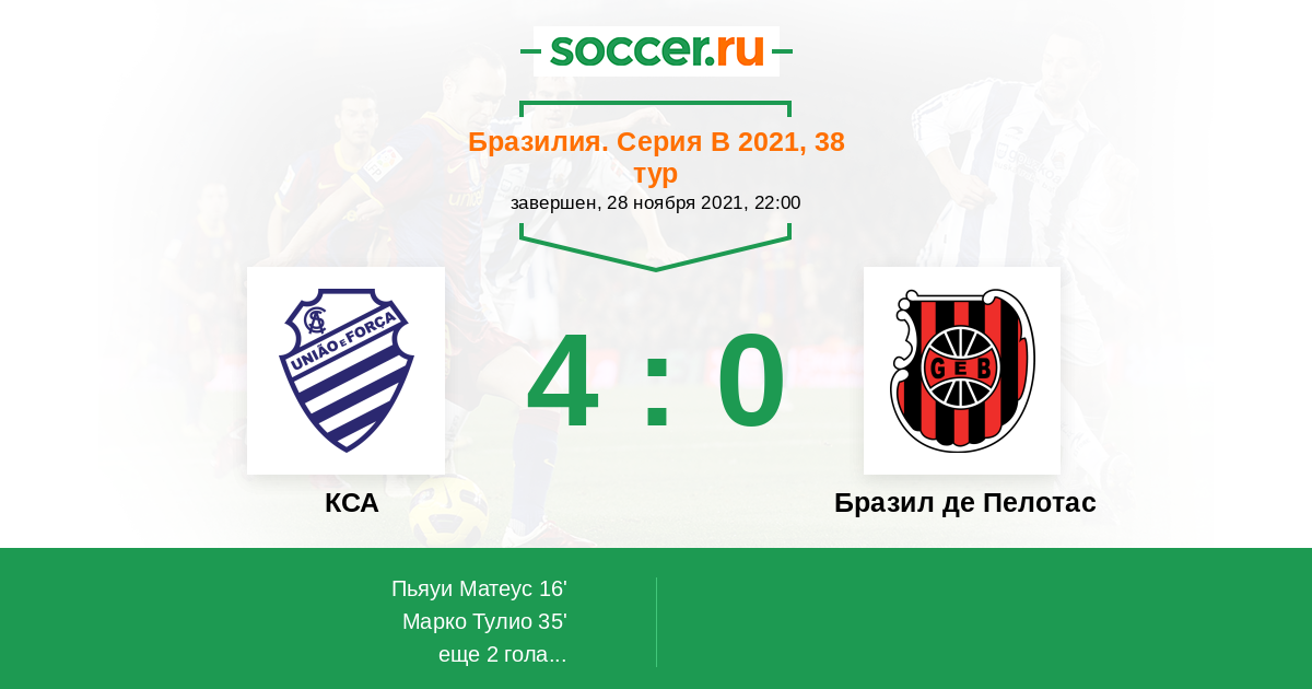 Протокол матча КСА против Бразил де Пелотас
