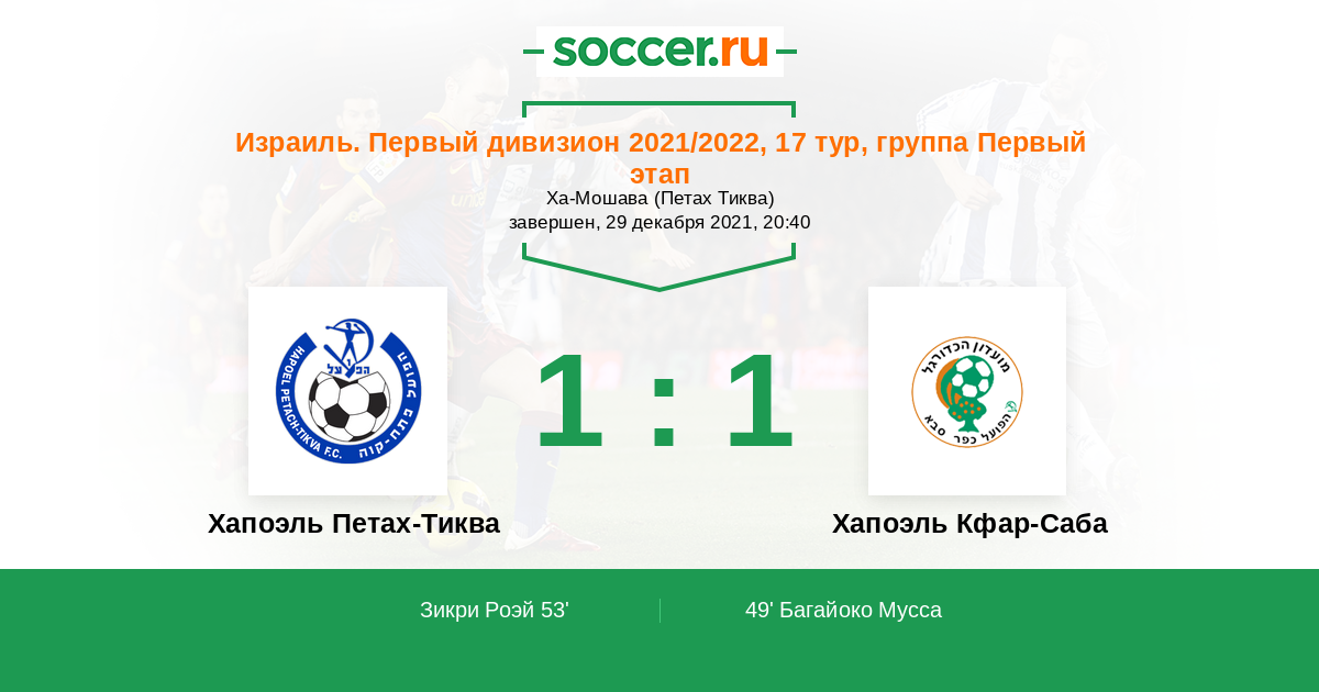 Протокол матча Хапоэль Петах-Тиква против Хапоэль Кфар-Саба