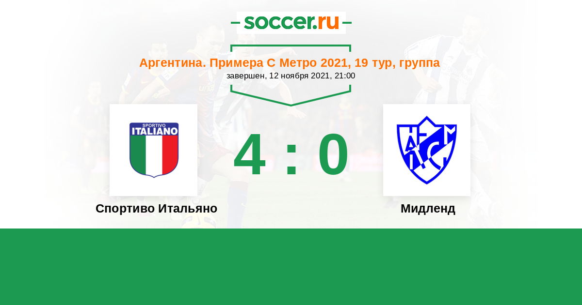 Аргентина. Примера С Метро 06.06.2022 Мидленд Логотип футбольный клуб Мидленд (Либертад) 1:0 Логотип футбольный клуб Спортиво Итальяно (Буэнос-Айрес) Спортиво Итальяно