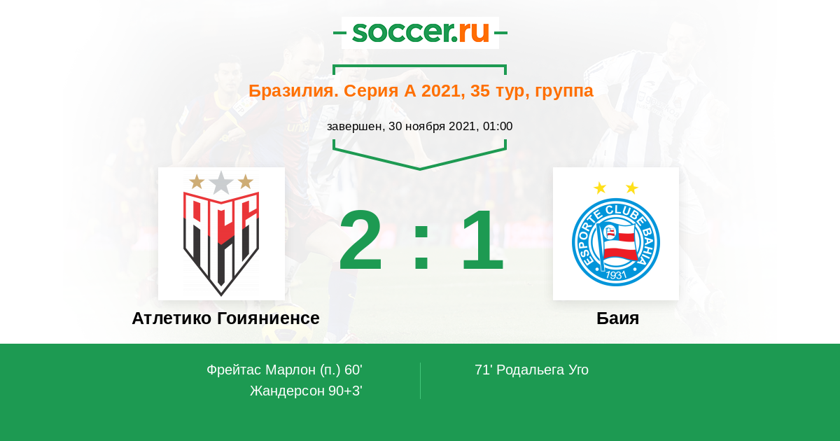 Гол90+3' (2:1) Жандерсон (11) (Лукао (21))