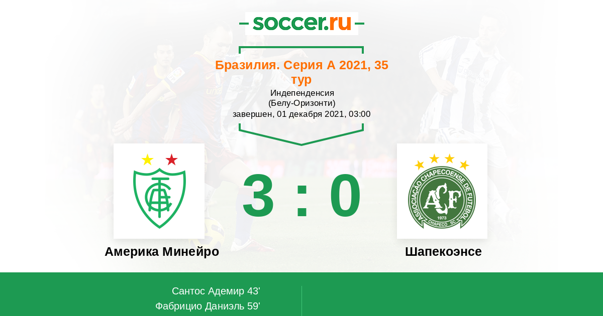 Протокол матча Америка Минейро против Шапекоэнсе