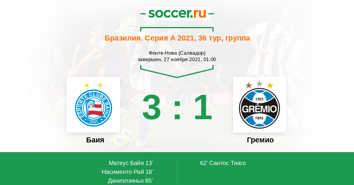 13' (1:0) Матеус Байя (79) (Насименто Рай (18))