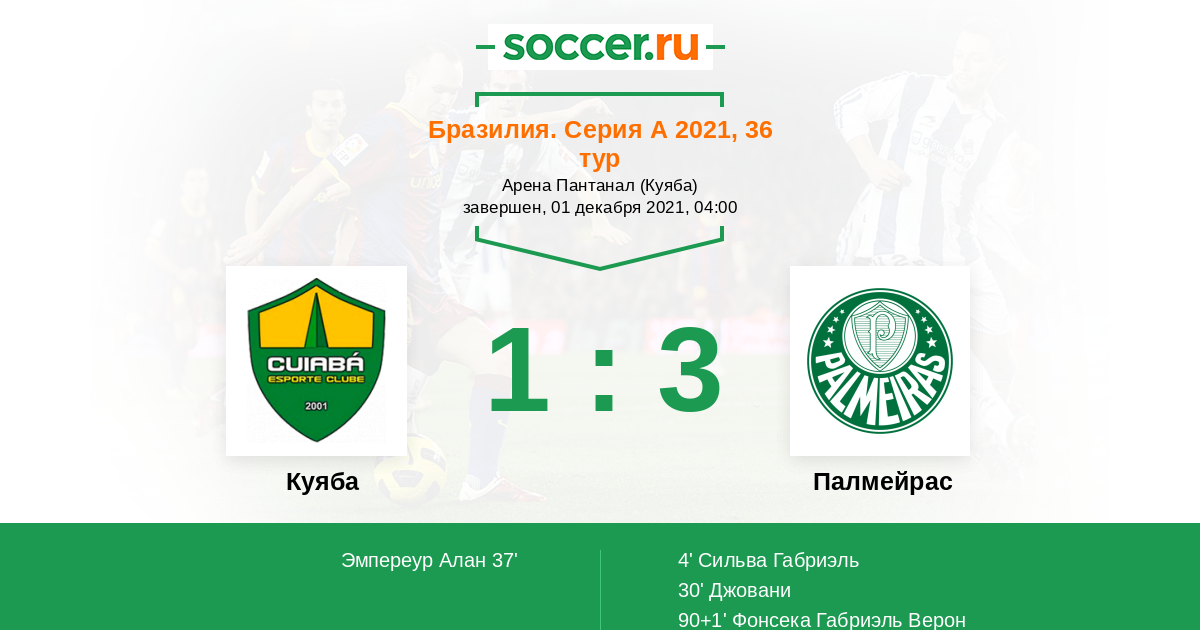 30' (0:2) Джовани (41) (Габриэль Менино (25))