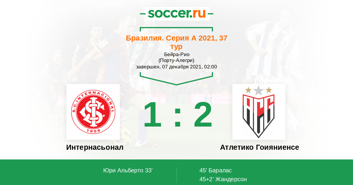 Гол45+2' (1:2) Жандерсон (11) (Арналдо (13))