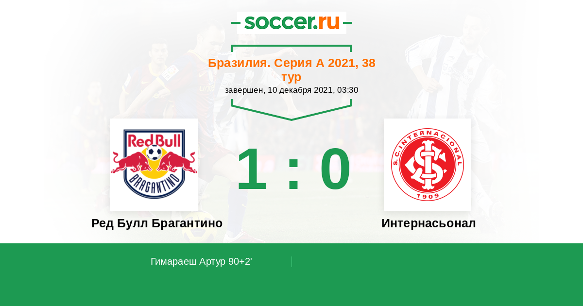 Протокол матча Ред Булл Брагантино против Интернасьонал