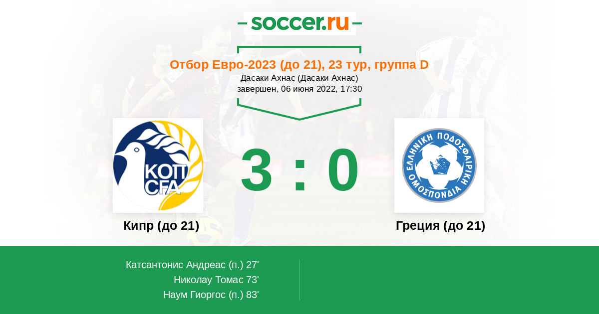 Протокол матча Кипр (до 21) против Греция (до 21)