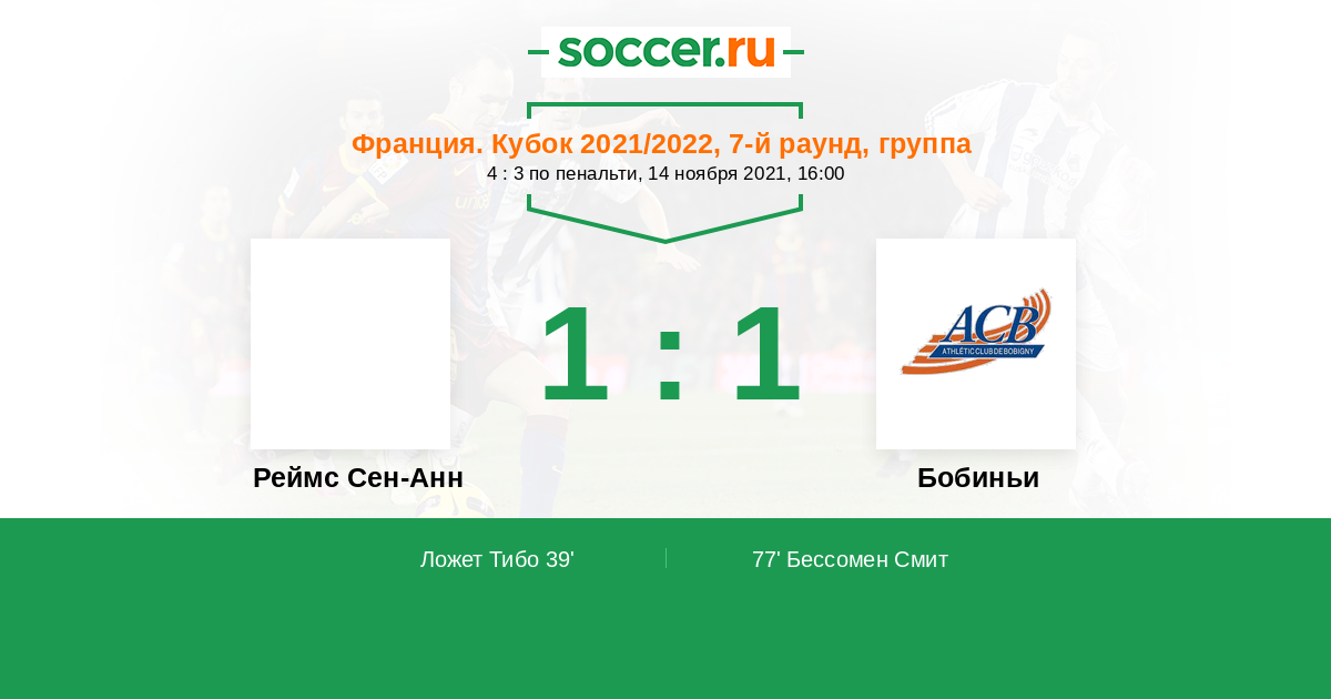 Протокол матча Реймс Сен-Анн против Бобиньи