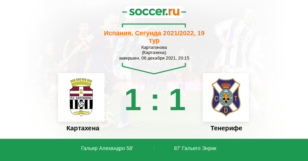 Протокол матча Картахена против Тенерифе
