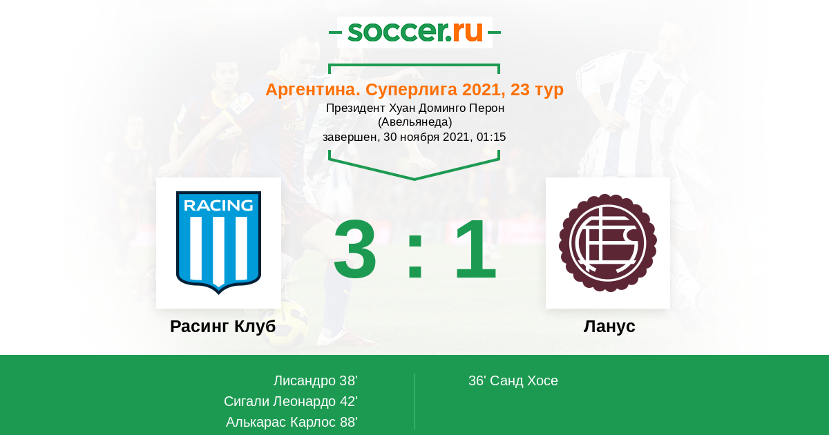 Протокол матча Расинг Клуб против Ланус