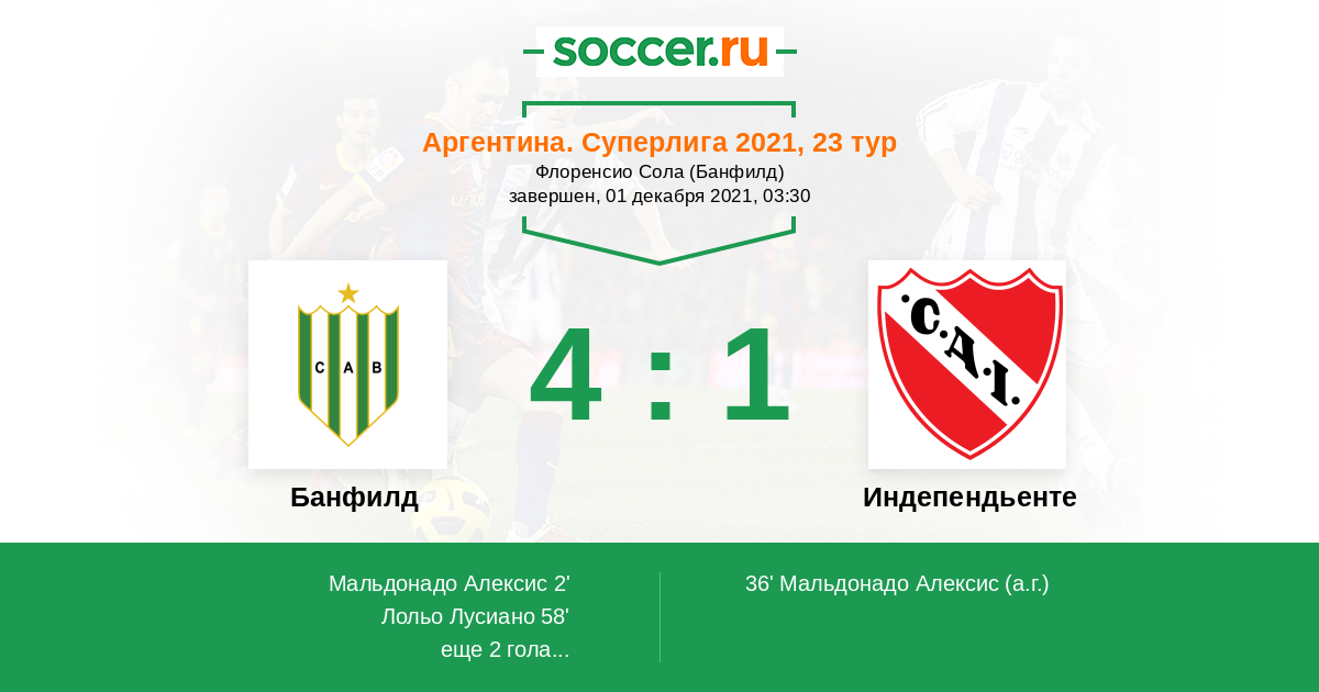 Протокол матча Банфилд против Индепендьенте