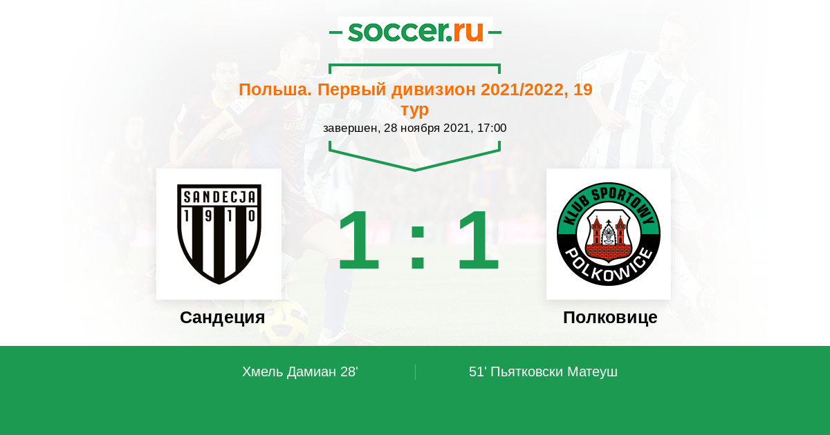 Протокол матча Сандеция против Полковице