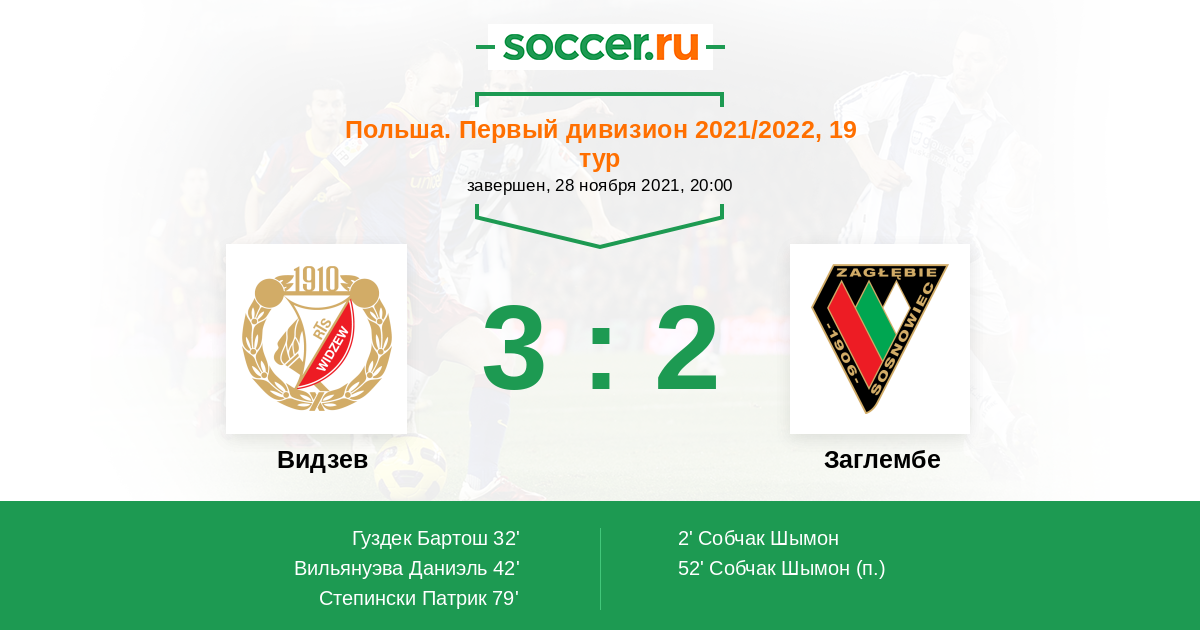 Протокол матча Видзев против Заглембе
