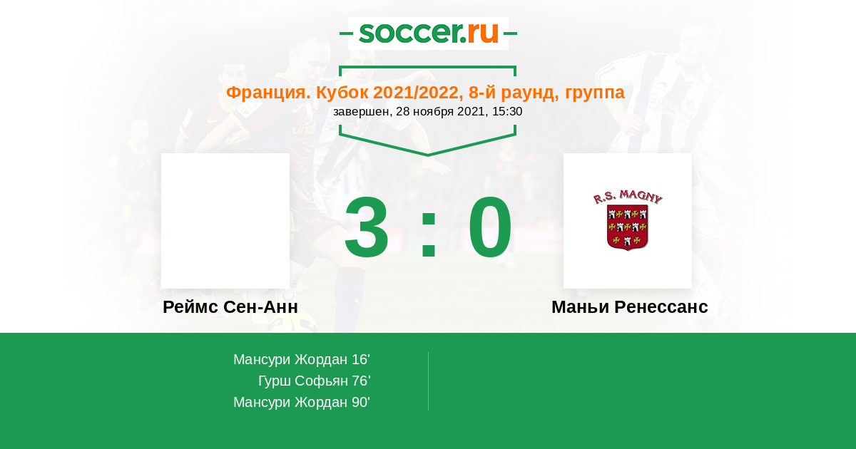 Протокол матча Реймс Сен-Анн против Маньи Ренессанс