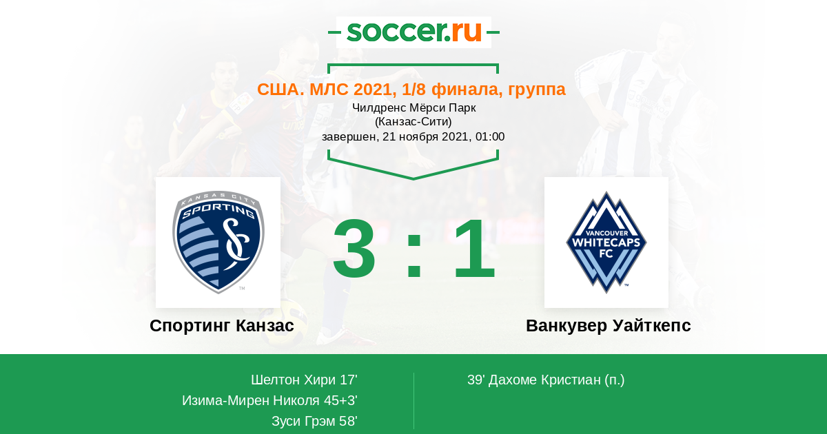 Протокол матча Спортинг Канзас против Ванкувер Уайткепс