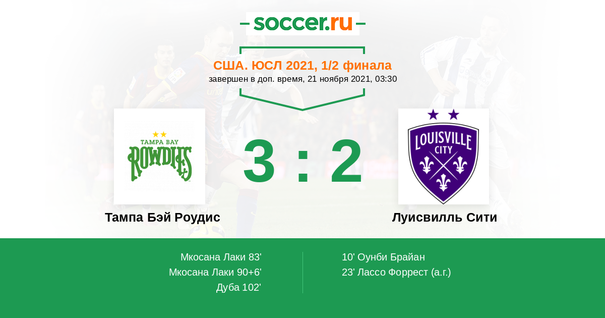 Протокол матча Тампа Бэй Роудис против Луисвилль Сити