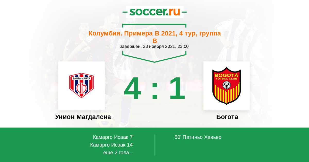 Протокол матча Унион Магдалена против Богота