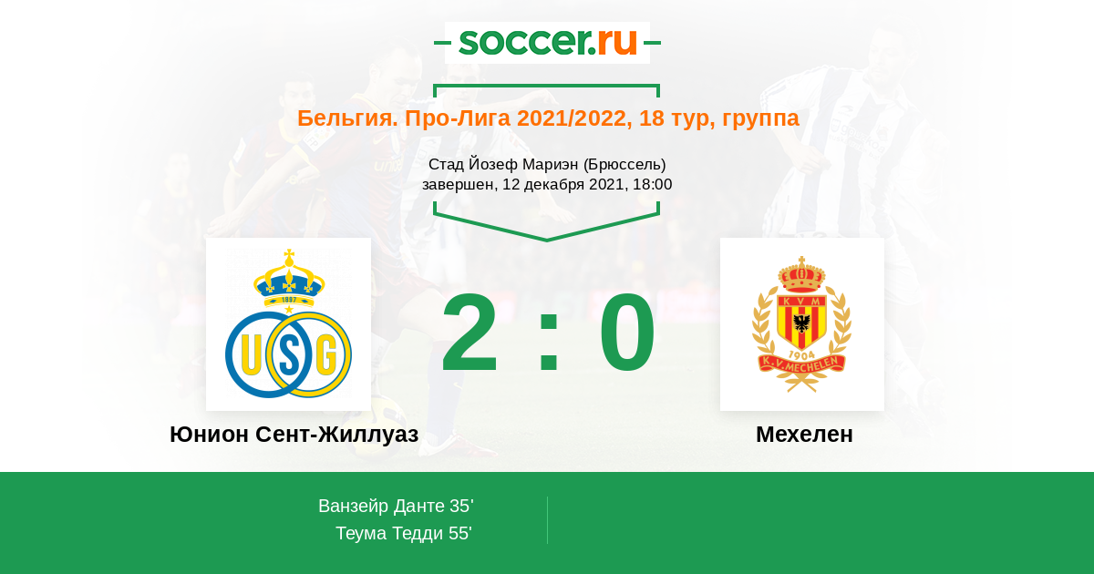 Протокол матча Юнион Сент-Жиллуаз против Мехелен