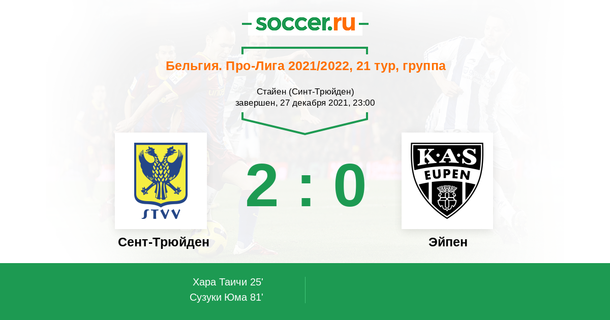 В матче встречающихся сегодня в бельгийской Про-Лиге команд Сент-Трюйден и Эйпен поставлю на победу хозяев или на ничью, потому как они играют дома, а соперник на выезде не особо силён.