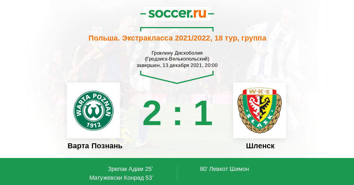 53' (2:0) Матужевски Конрад (22) (Зрелак Адам (99))