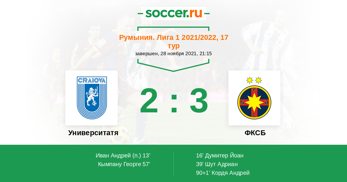 57' (2:2) Кымпану Георге (28) (Нистор Дан (16))
