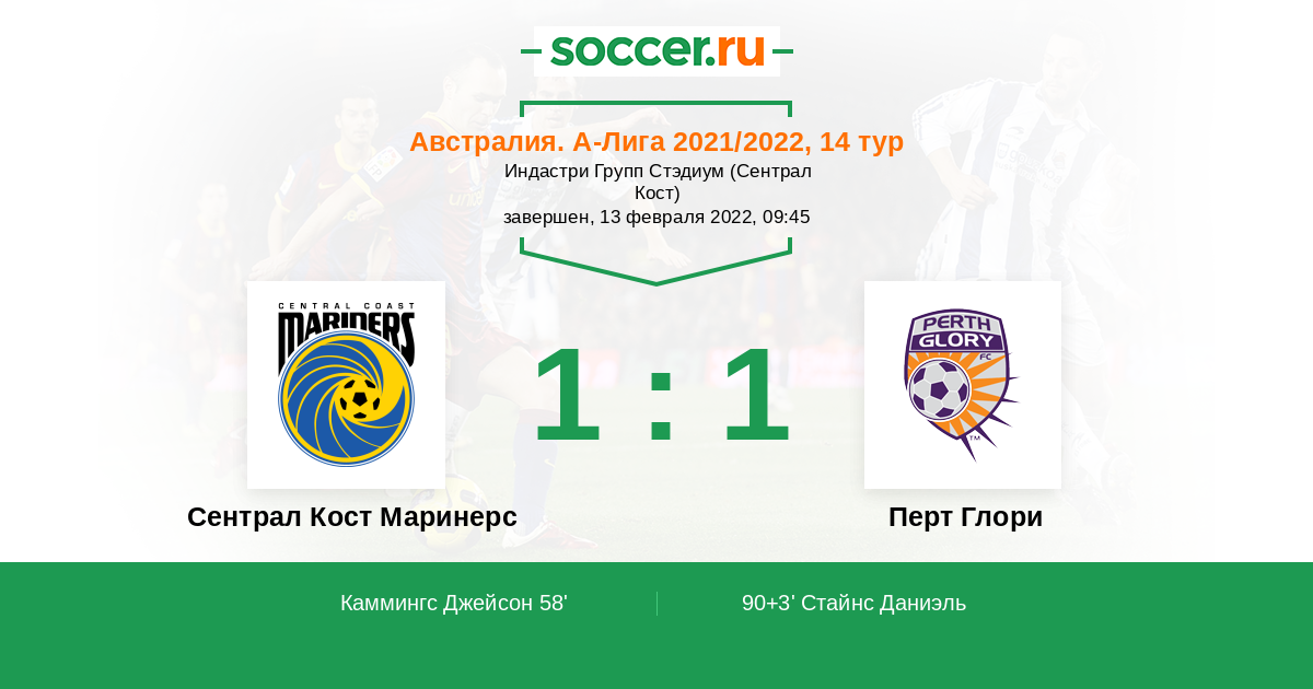Протокол матча Сентрал Кост Маринерс против Перт Глори