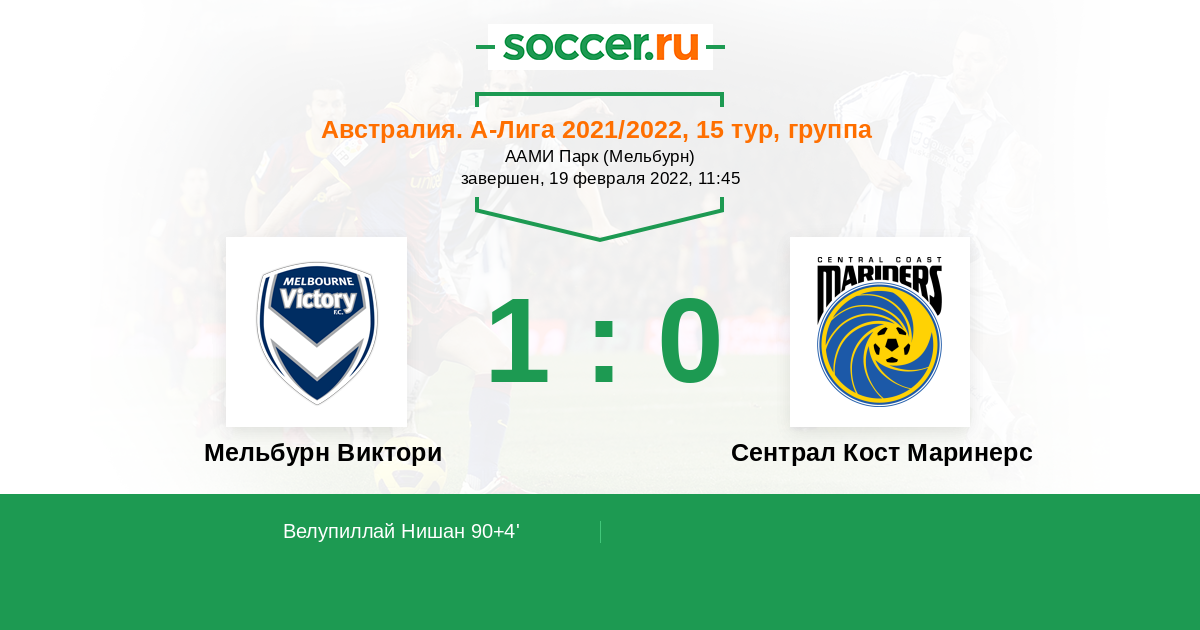 Протокол матча Мельбурн Виктори против Сентрал Кост Маринерс