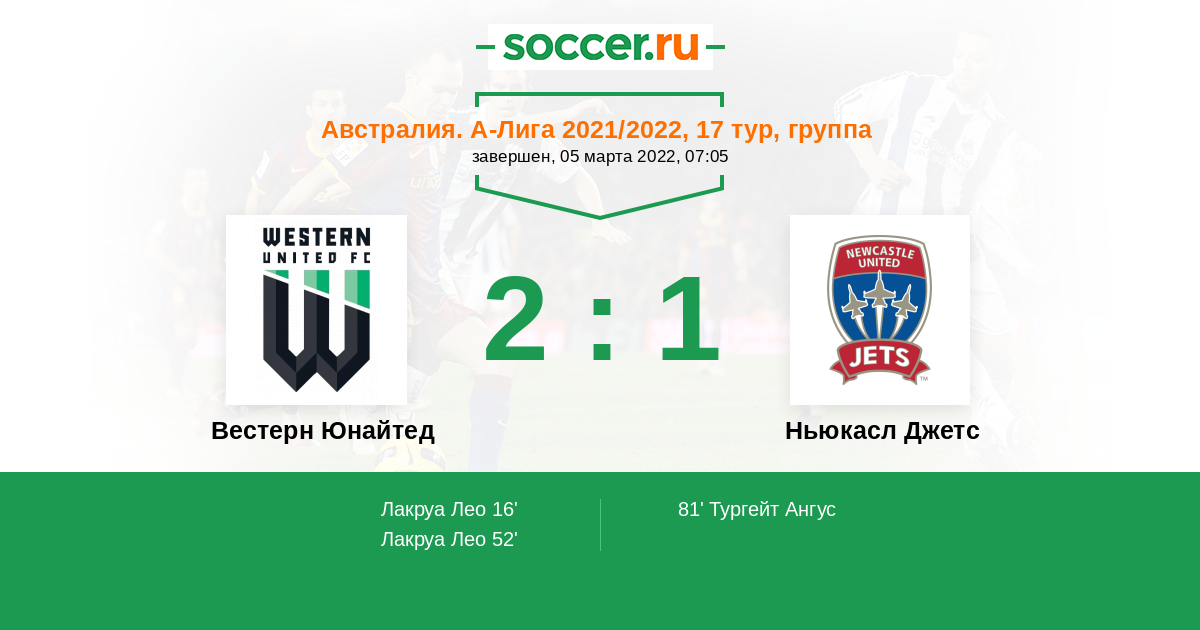 Протокол матча Вестерн Юнайтед против Ньюкасл Джетс