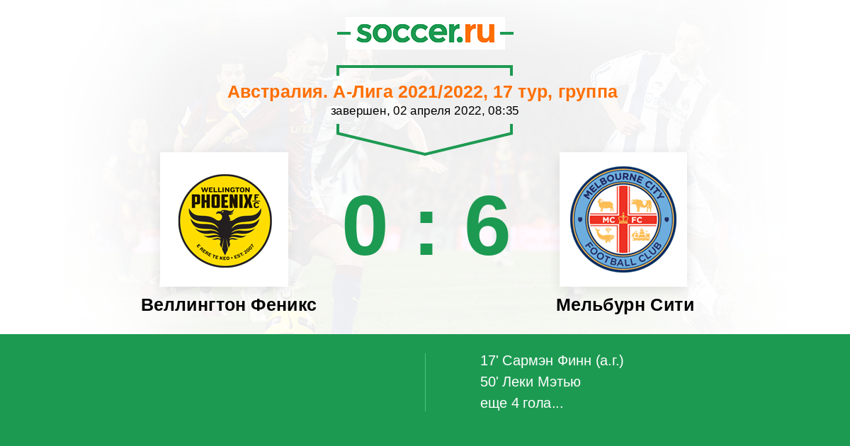 Протокол матча Веллингтон Феникс против Мельбурн Сити