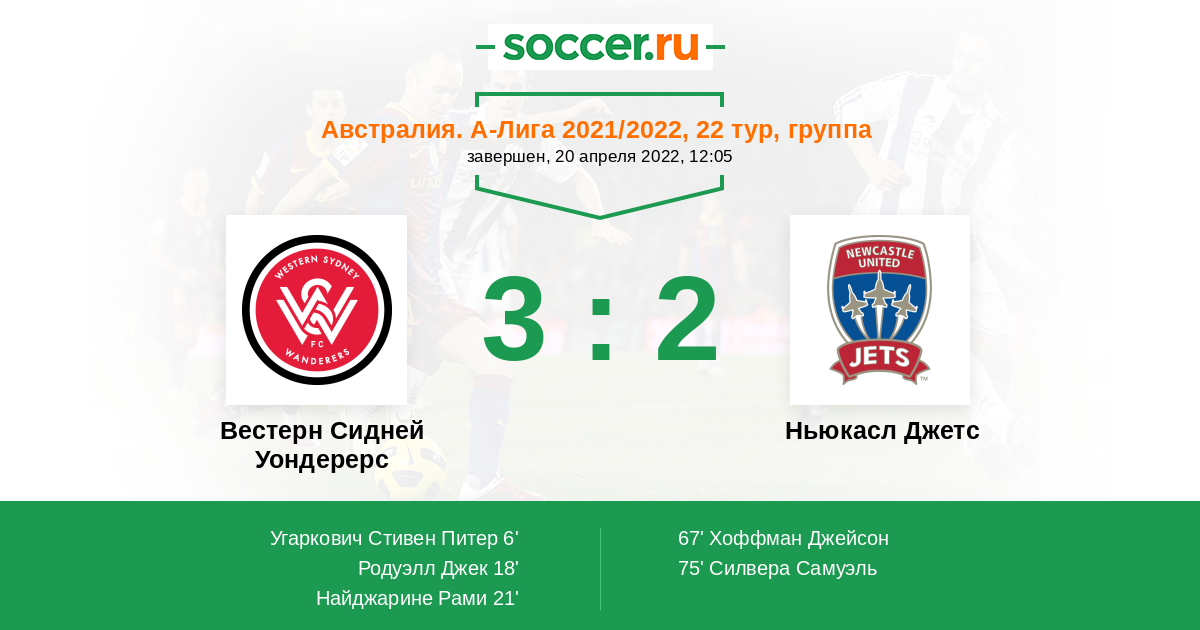 Протокол матча Вестерн Сидней Уондерерс против Ньюкасл Джетс