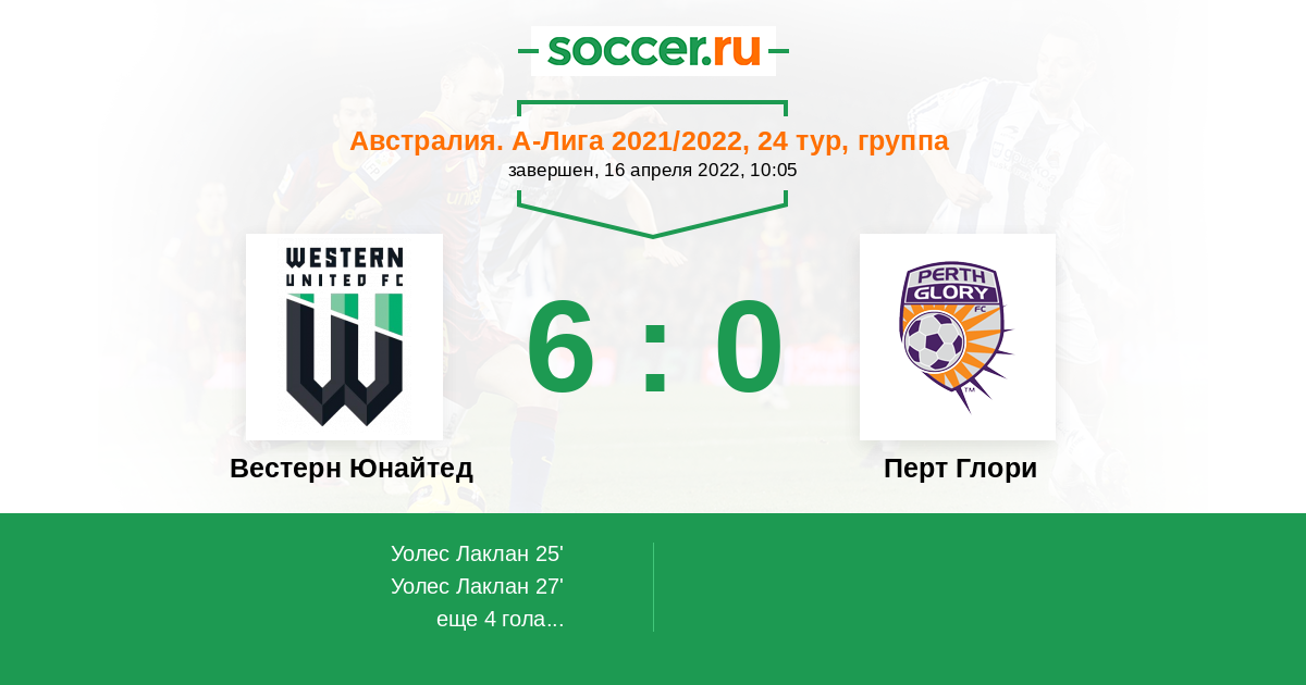 Протокол матча Вестерн Юнайтед против Перт Глори