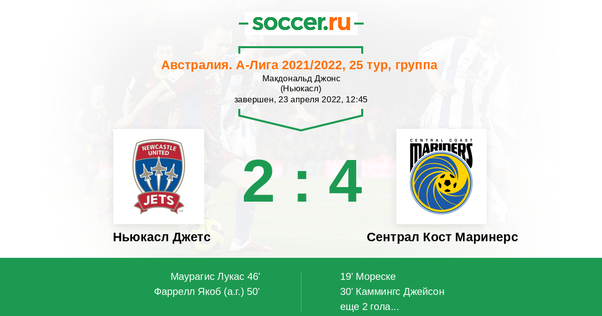 Протокол матча Ньюкасл Джетс против Сентрал Кост Маринерс