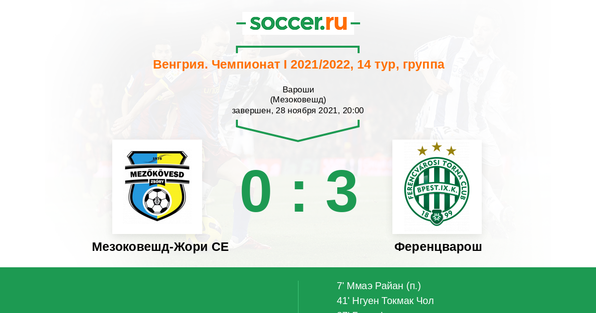 Протокол матча Мезоковешд-Жори СЕ против Ференцварош
