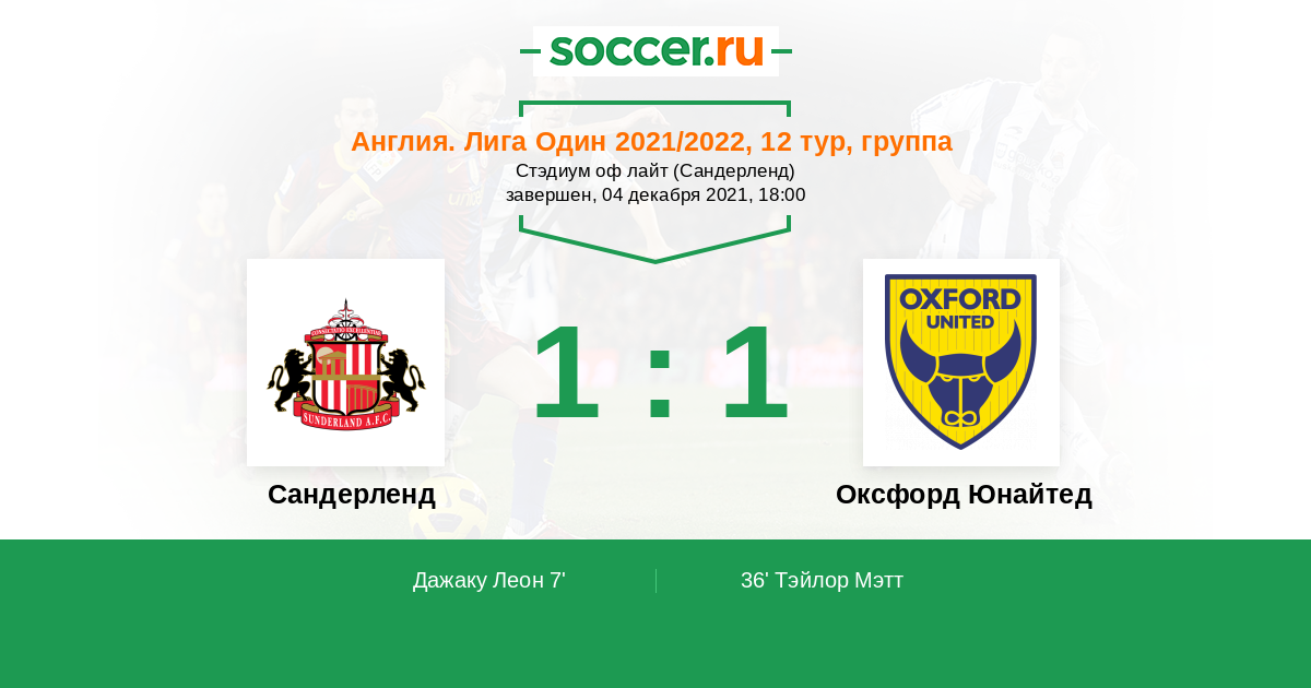 Протокол матча Сандерленд против Оксфорд Юнайтед