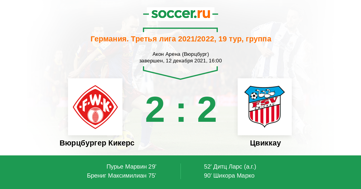 Протокол матча Вюрцбургер Кикерс против Цвиккау