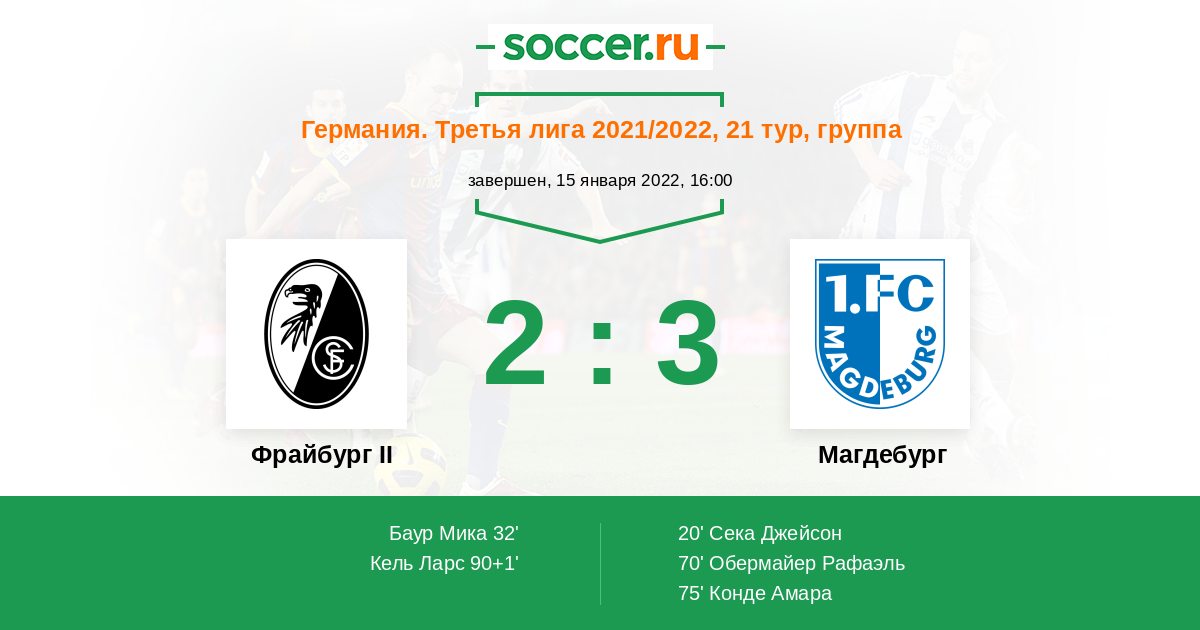 Протокол матча Фрайбург II против Магдебург