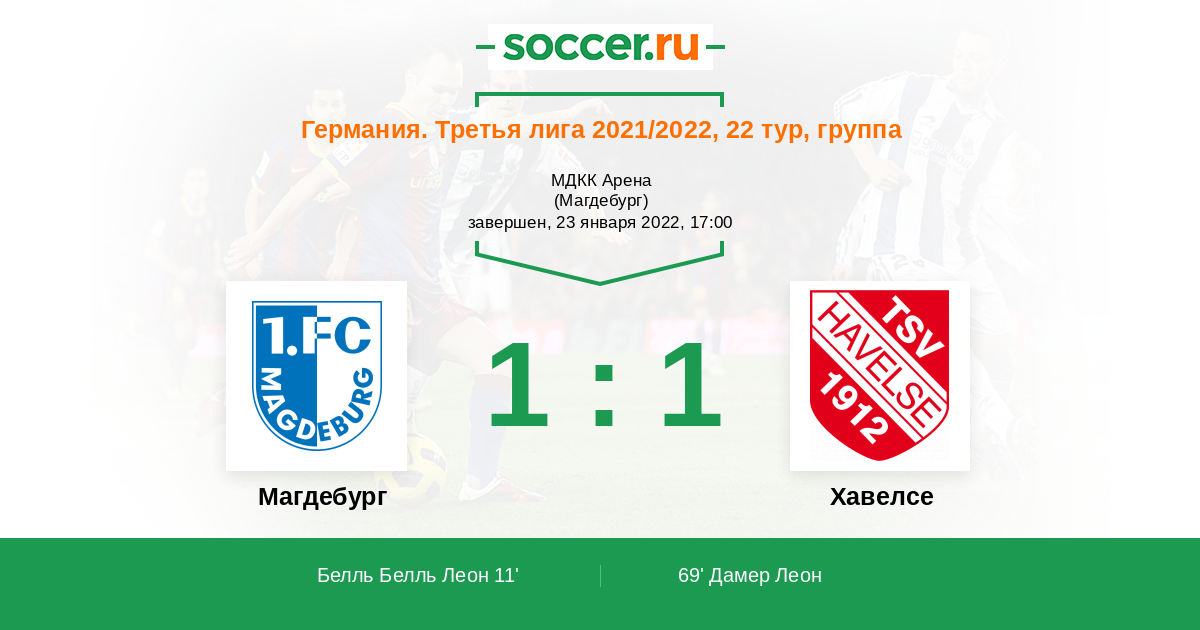 Протокол матча Магдебург против Хавелсе